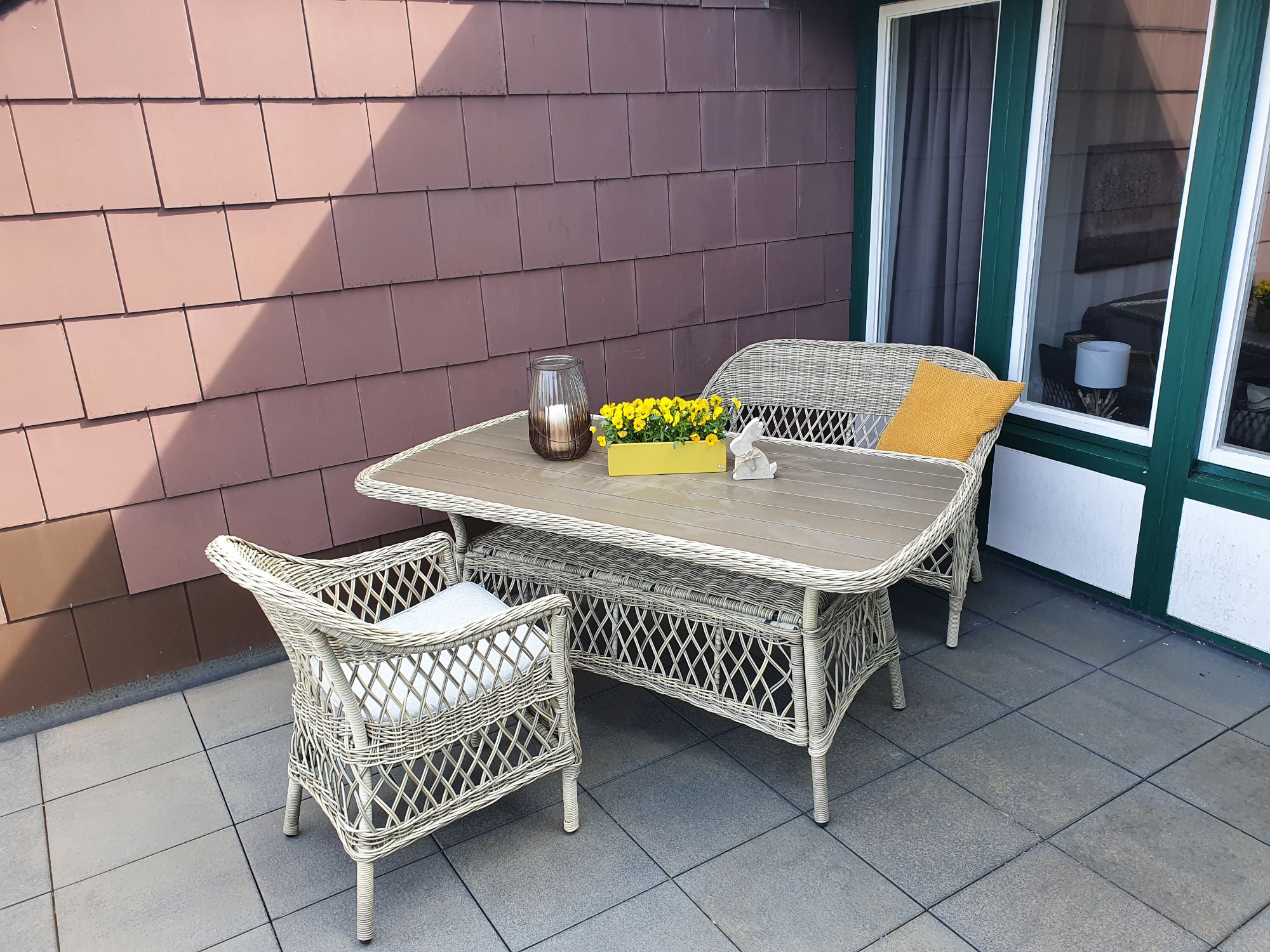 Unsere Ferienwohnung mit großer Loggia gehört zu einer Ferienwohnanlge mit Hallenbad und Sauna. Der denkmalgeschützte Terrassenpark liegt in ruhiger Lage auf 600m Höhe in Brandmatt.